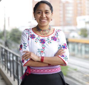 De la nacionalidad Kichwa Cañari, es docente e investigadora con una maestría en Educación Superior con mención en Interculturalidad y Gestión. Cuenta con amplia experiencia en gestión del Sistema de Educación Intercultural Bilingüe en los ámbitos de planificación, ejecución, seguimiento, evaluación, producción de material técnico- pedagógico con pertinencia cultural y lingüística.